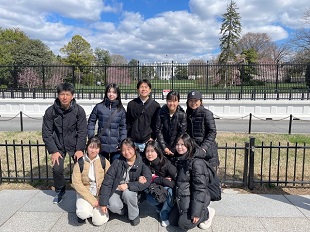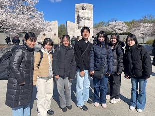 短期留学3日目は、フィールドトリップでワシントンD.C.に向かいました。リンカーン記念堂やキング牧師の記念碑を見学し、満開の桜並木を眺めながらワシントン記念塔、そしてホワイトハウスへ。どれも壮観と言えるもので、生徒たちは感激しきりの様子でした。国立歴史博物館で昼食をとった後、お土産を見たり、展示エリアをいくつか観覧していると、あっという間に帰りの時間に。名残惜しくも、充実の活動となったようです。