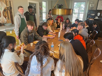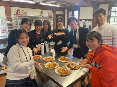 3時間目は校内の農場に向かい、ここでもマクダナ生に混ざって一緒にピザ作り。和気藹々とした雰囲気で、調理から食事まで楽しく過ごしました。