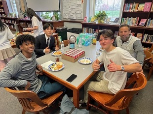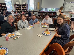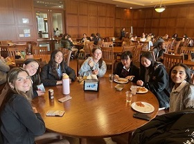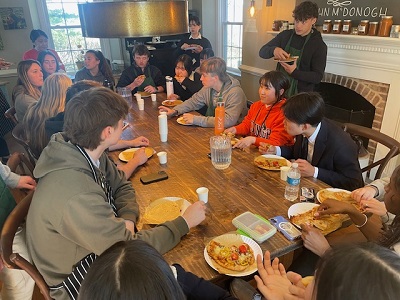 2日目の朝、時差ボケも感じさせず、全員が時間通りに集まりました。ホスト先での出来事を少しシェアし、それぞれバディの生徒と同じ授業へ。成城学園にはない科目があったり、1コマ100分の授業があったり、授業の展開が全く違ったりと、多くの発見がある一日でした。カフェテリアや図書室、フィールドで過ごす時間も新鮮で、ショップで早速マクダナグッズを買った生徒もちらほら。放課後もラクロス観戦、ホスト合同の夕食会など、心地良い忙しさの中で存分に楽しめているようです。