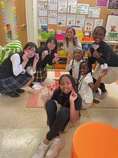 「ウケなかったらどうしよう…」と心配していたパフォーマンスは、不安がウソのような大成功に!成城生の堂々とした振る舞いと、マクダナ生のノリの良い雰囲気で大盛り上がりでした。以後さらに多くのマクダナ生に話しかけられるようになり、一躍人気者に。カフェテリアでは「一緒に食べようよ!」と誘われ、新たな輪に入っていく生徒もいました。とにかく全員安心した様子で、自信も得られたようです。