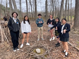 その後、小学校で前回とは異なる学年の生徒の交流を行ってから、ビジュアルアートの授業へ。敷地内の林をグループで歩き、見つけたもので作ったアート作品を撮影するという、とても刺激的な内容でした。
