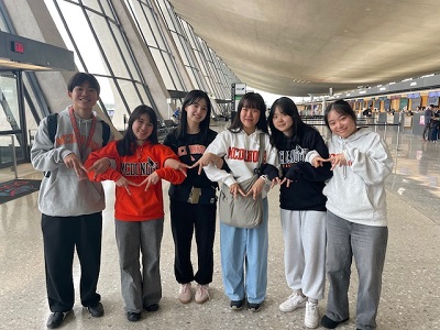 羽田空港での集合は早朝でしたが、全員遅れることなく、スムーズなスタートを切ることができました。出国前に集合写真を撮り、いざアメリカへ。フライト中は興奮もあってか、あまり眠らないで過ごした生徒も多かったようです。