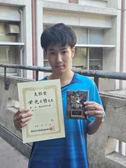 8月26日に行われた「第77回 第8支部卓球選手権大会(シングルス)」において、小出敬誠くん(中3)が中学男子シングルスで見事、第3位となりました。