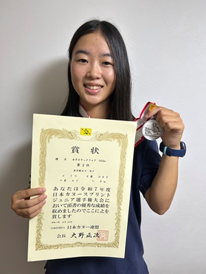 小池花怜さん(高3)が8月に山梨県富士河口湖町の精進湖カヌー競技場で行われた令和7年度日本カヌースプリントジュニア選手権大会(全国大会)に出場し、女子カヤックフォア500m競技で準優勝という結果を収めました。引き続き応援よろしくお願いします。