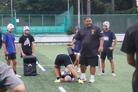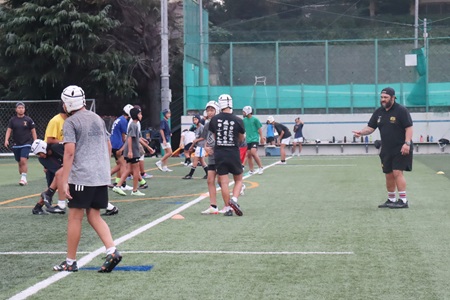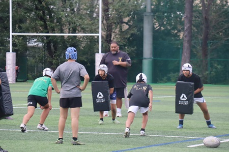 元オールブラックスのコーチによる指導を受ける生徒たち