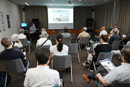 その関連イベントとして、6月29日(土)に、世田谷美術館主任学芸員の池㞍豪介さんを講師に招いて「成城に住んだ美術家たち」というテーマで講演会を開催しました。同美術館では2月~4月に「美術家たちの沿線物語 小田急線篇」が開催され、池㞍さんはこの展覧会の担当をされていました。
