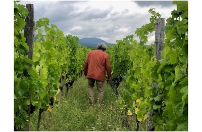 Roses Sauvages 2019 は、50%ピノノワール(pinot noir) 50% ピノグリ(pinot gris)の混種です。ピノノワールはそのまま果汁にし、(マセラシオンはしていない)ブルゴーニュ樽で熟成。ピノグリは大樽で熟成。どちらも2年寝かしている。ぶどうは(テンペ氏の住む)Zellenberg村の畑のもの。