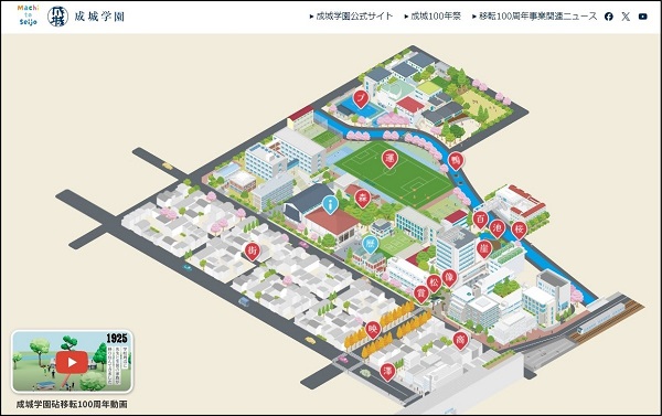 特設サイトは、成城学園とまちに関するトリビアを楽しみながらご覧いただけるよう作成しました。移転100周年関連ニュースもこちらのサイトで発信していきます。
