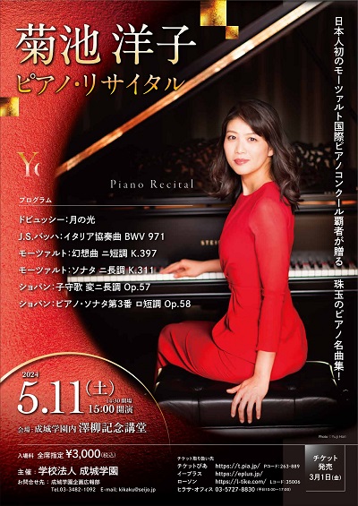 記念すべき第30回の開催となる今年は、ピアニストの菊池洋子氏をお招きして、以下のプログラムで開催いたします。