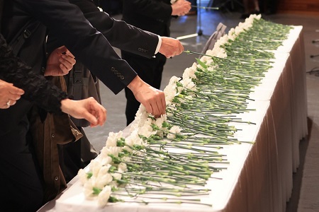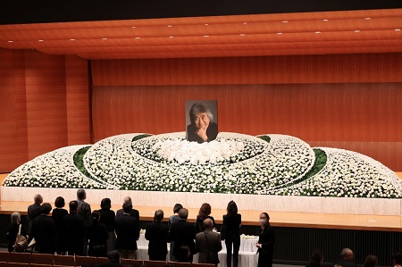 当日は1,350名もの方にご参列いただきました。お越しいただいた皆さまに心より御礼を申し上げます。予想を上回るたくさんの方にご参列いただきましたため、献花のご案内では長時間お待たせしてしまいました。この場を借りてお詫び申し上げます。