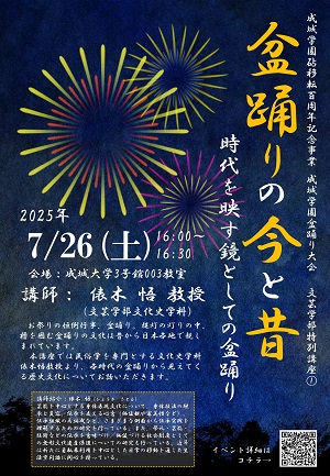 また、成城大学文芸学部による特別講座も同日開催予定です。