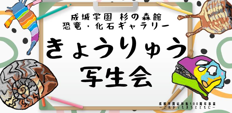 学校法人成城学園 恐竜・化石ギャラリーには、恐竜や海棲爬虫類の化石約150点が展示されています。化石を間近でじっくり観察しながら、ゆっくり絵を描いていただく、小さなギャラリーだからこそできる写生会を企画しました。はるか昔に絶滅してしまった古生物たちに思いを馳せながら、楽しい午後のひとときをお過ごしください。