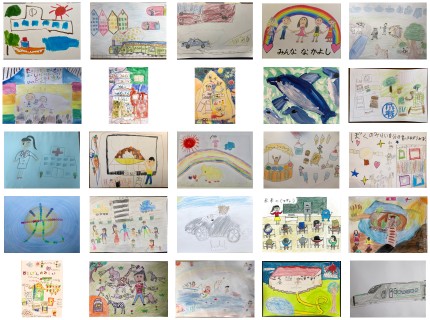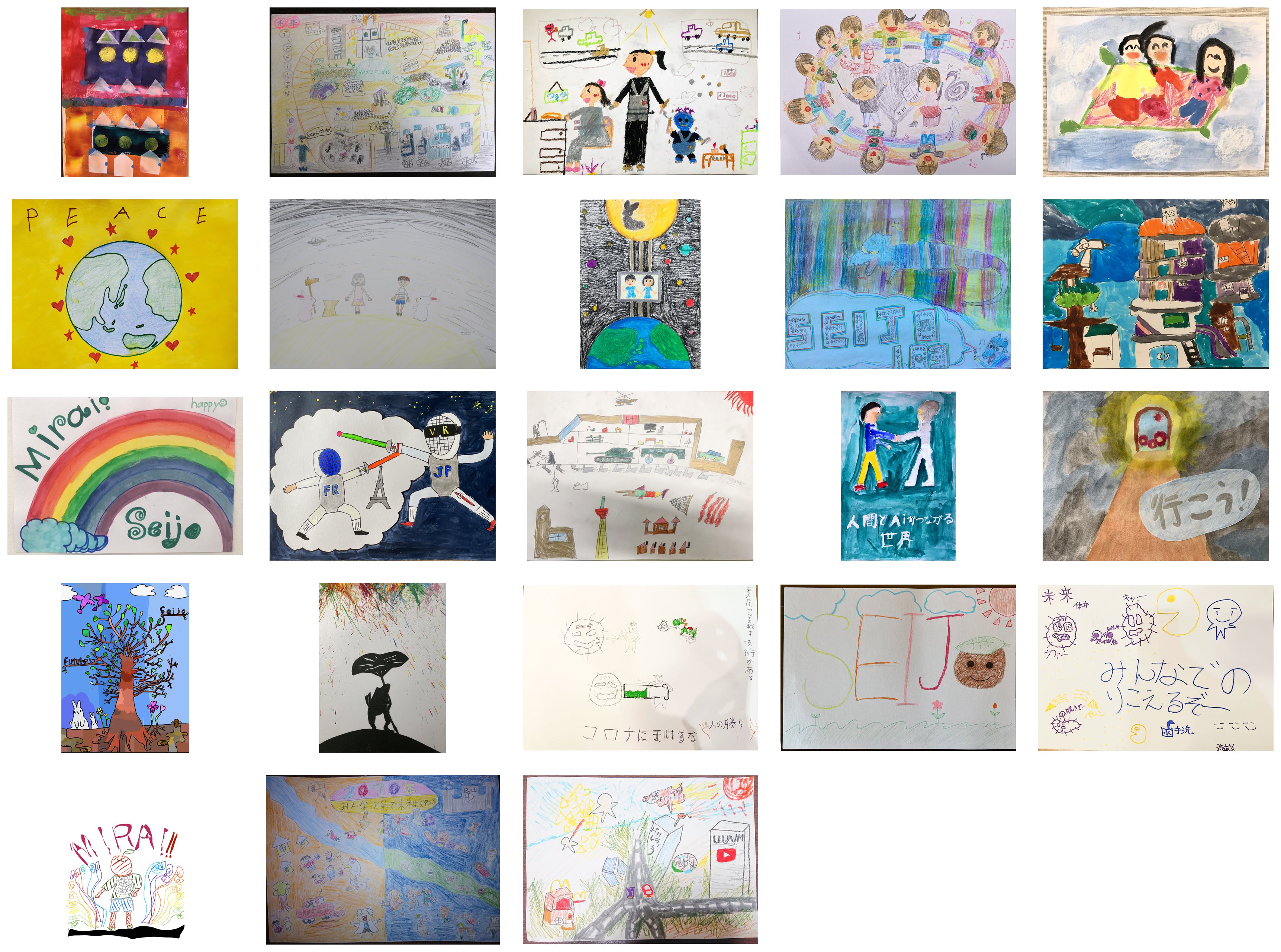 外出自粛などで閉塞感漂う時世だからこそ、子どもたちに前向きな思いや夢を描いてもらいたいと願い、選んだテーマです。幼稚園児から高校生まで72点の応募があり、明るい未来、悩める未来、進化した未来、様々な想いが溢れています。
