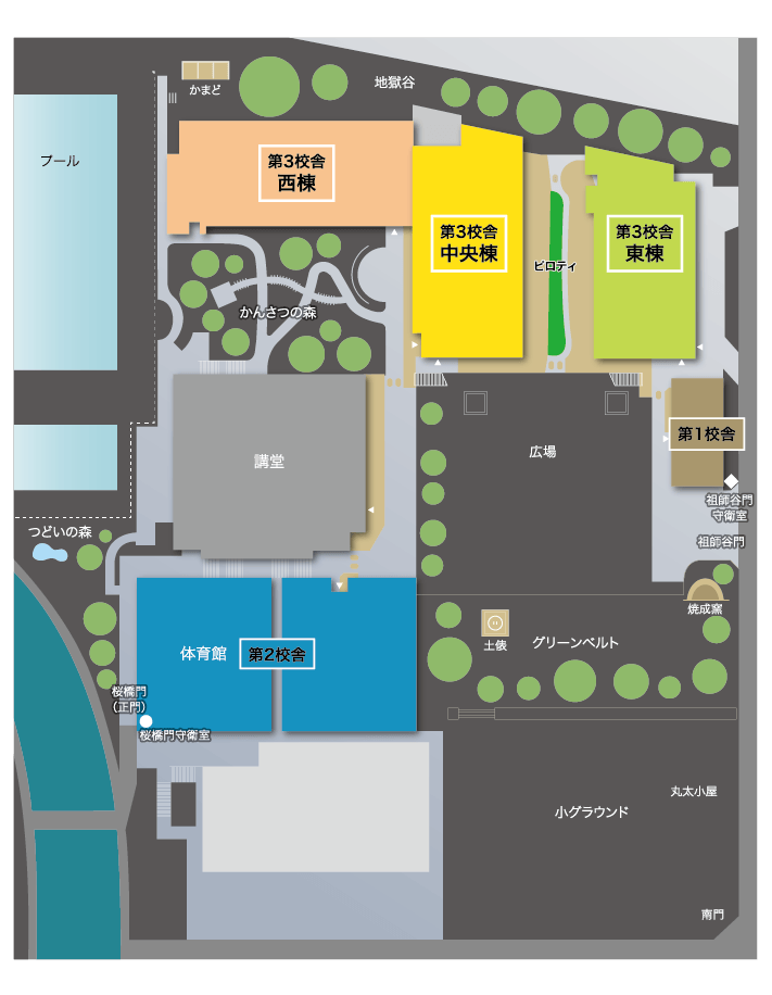 ※第3校舎(新校舎)は「新校舎紹介ページ」にリンクしています。