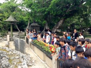 少し雲が残るお天気でしたが、雨に降られることなく初日を終えることができました。到着後、ひめゆりの塔・資料館を見学しました。