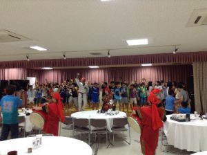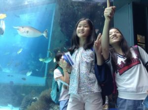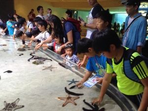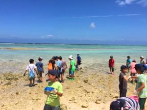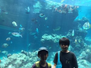 今日も晴天でしたが、台風の影響で波が高く、沖縄美ら海水族館の見学に予定を変更して活動しました。館内でジンベイザメなど珍しい海洋生物をたくさん見学しました。 夕食後は、ホテルで島唄・エイサーのショーを楽しみました。エイサーでは、ほとんどの子どもがステージに上がって踊り、最後の夜にとても素敵な思い出ができました!