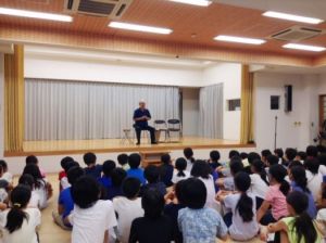 ホテルで夕食をとった後、対馬丸沈没事件の体験者・上原さんのお話を伺いました。子どもたち一人ひとりが、平和について考える1日となりました。