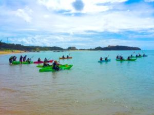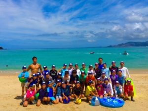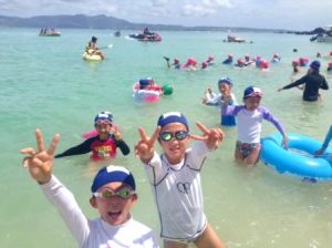 午前中は自由遊泳、午後はクラスごとにシーカヤック・シュノーケリング・遊泳を楽しみました。天気もよく、波も穏やかで、沖縄らしい自然体験を行うことができました。空と海がとても美しいです
