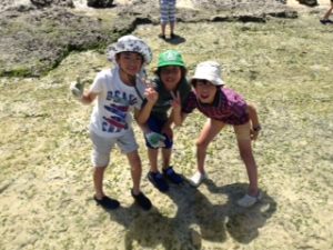 午前中は、近くの海岸で生き物の観察を行いました。カニやヒトデ、ナマコなど海の生き物に触れる貴重な機会となりました。午後は、むら咲むらでの体験学習を行いました。事前に希望した体験を楽しみながらも真剣に取り組んでいました。できあがった作品を大切に持ち帰る子どもたちの姿が印象的でした。