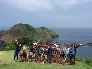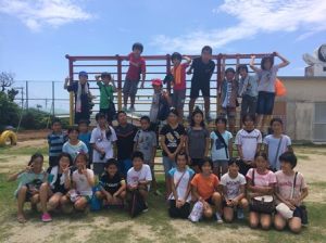 島の3つの小学校の子たち18名と交流会を元気に行いました。どこまでも素晴らしく青い海と空の下、ゲームやドッヂボール、BBQでお互い仲良くなり、午後のフリータイムに遊びに来てくれた子もいました。