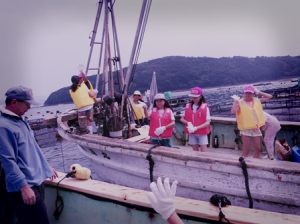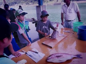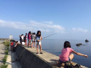 栄喜漁港で栽培漁業体験と刺身の調理、魚釣りをしました。天候に恵まれすばらしい体験が出来ました。