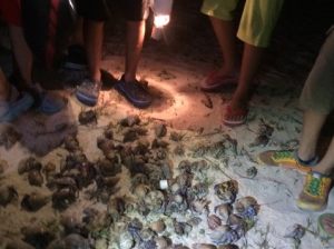 満月の夜、私たちは海岸へ、東京では決して見られることのない大きな大きなヤドカリ(オカヤドカリ)をつかまえに。バケツいっぱいに集めたヤドカリを輪になった私たちの中央で放されます。