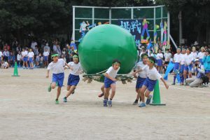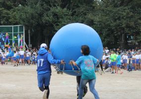 協力して大玉を運ぶ3・4年UFOレース