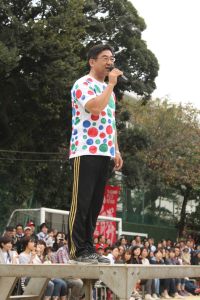 初等学校 加藤 陸雄校長は、運動会では「赤・青・緑」の色を必ず採り入れた洋服を身に着けていて、密かに注目を集めています。今秋はというと・・・