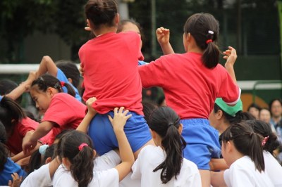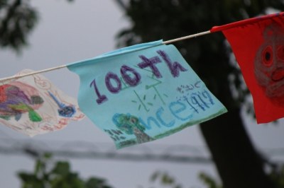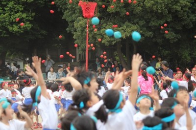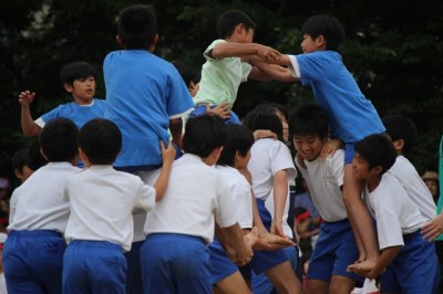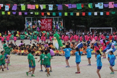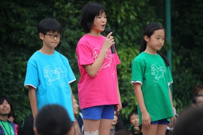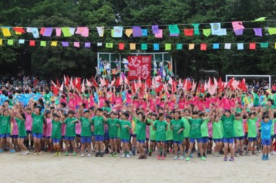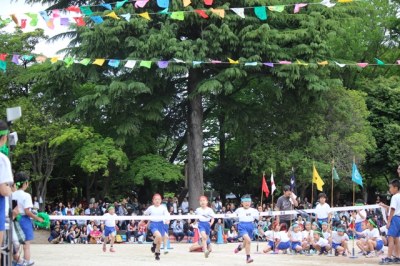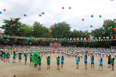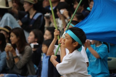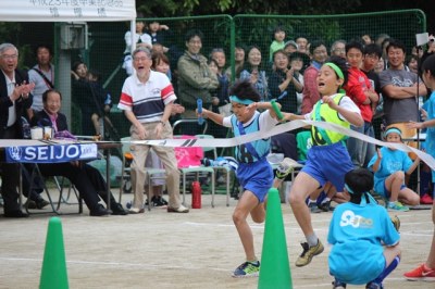 今年は成城学園創立100周年。学園の歴史は成城小学校から始まりますから、成城学園初等学校が100周年を迎えたわけです。そこで今年は運動会も特別編。100周年を祝う言葉で彩られた子どもたち手作りの旗がはためき。運動会の締めくくりには、初等学校100周年記念マスコット「モグとかげ」も登場した特別パフォーマンスが行われました。