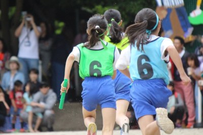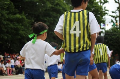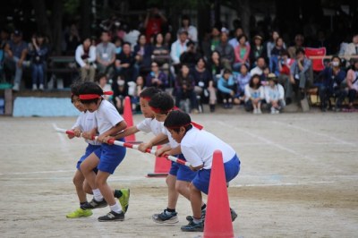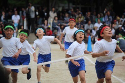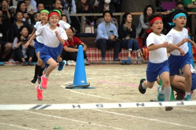 1年生の徒競走ではお兄さんお姉さんがサポート