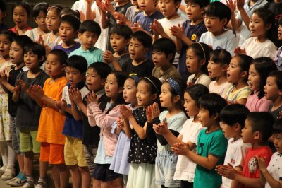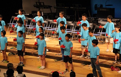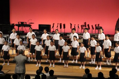 初等学校の音楽の会が6月9日(金)は児童対象に、翌10日(土)には保護者を対象に行われました。今回で95回を数える伝統行事。会場となった講堂では子どもたちの大きくて元気な歌声や、さまざまな楽器の音色が響き渡りました。最後のプログラムは全校合唱。「地球まるごとワッハッハ」という、タイトルを聞くだけで元気になる曲です。人や動物、虫まで、みんなで「ワッハッハ」と笑おう。この日を迎えるまで、クラスや学年で力を合わせて楽しく真剣に取り組んできた子どもたちの頑張りを象徴するような歌でした!