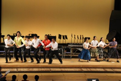 3年生全員でサンバの歌を歌うと、会場もノリノリ