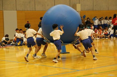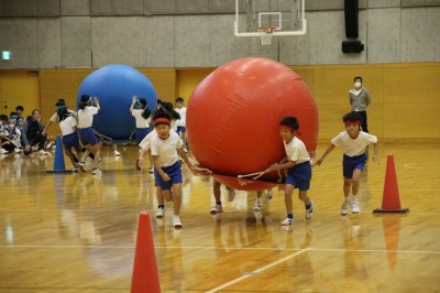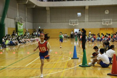 さわやかな秋晴れ……とは程遠く、15日連続の降水など雨ばかりだった10月。初等学校で予定していた幼稚園との合同運動会は、予備日も含めて雨が続き、やむなく中止となりました。しかし12月13日(水)、中高の体育館を借りて運動会を開催することができました(1年生1クラスは学級閉鎖のため不参加)。競技種目はわずか9つ。約3時間の小さな運動会でしたが「運動会に向けてみんなが一生懸命練習していた。やれば願いは叶うんだね」と子どもたちに話しかけた加藤陸雄校長は、みんなと一緒に「うれしい~~」とこの日を迎えることができた喜びを言葉にしました。