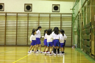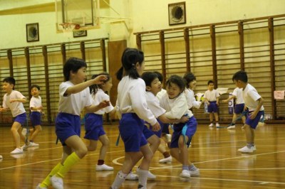 体育館遊びをした竹組はタグをぶら下げて鬼ごっこ!