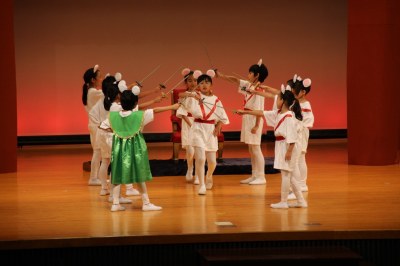 演技はもちろん、劇中の歌、ダンスもとても上手だった藤組。4年楓組が歌の応援で花を添えてくれました。