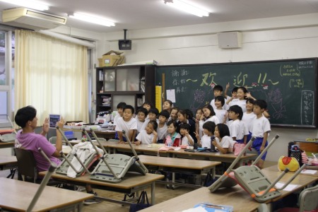10月5日(金)、上海愛楽児童合唱団が成城学園を訪れ、初等学校の子どもたちと交流しました。まずは澤柳記念講堂で全体交流会。上海愛楽児童合唱団の子どもたちが壇上に上がる時は、拍手をしながら「いい日だね」「Stein Song(乾杯の歌)」を歌って歓迎しました。初等学校合唱部は中国の民謡「茉莉花」を、続いて上海愛楽児童合唱団が「朝霞」「花非花」「三毛流浪記」の3曲を披露。両方ともすばらしい歌声で、お互いに大きな拍手を送りました。最後は初等学校の子どもたち全員で「きっといつまでも」を合唱。初めて聞いた歌のはずですが、上海愛楽児童合唱団の子どもたちも口ずさんでくれて、歌で心がつながりました。