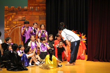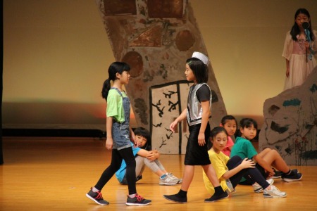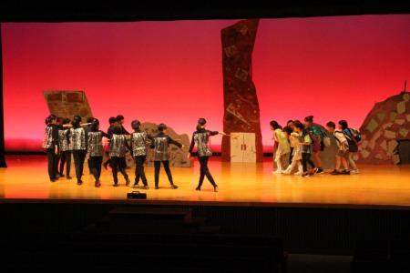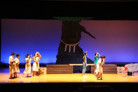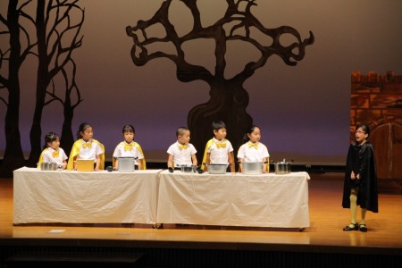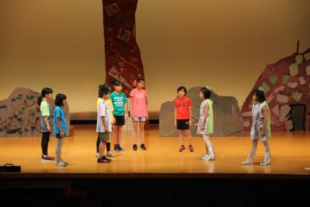 天災による被害が多かった今年、環境問題をテーマとした劇に挑みました。終盤の「もっと勉強して、元の地球を取り戻す」という子どもたちの決意に、見ている大人たちも考えさせられる劇となりました。