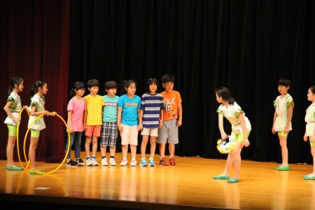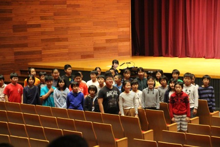 本リハーサルの後、先生からほめてもらって喜ぶ3年橘組