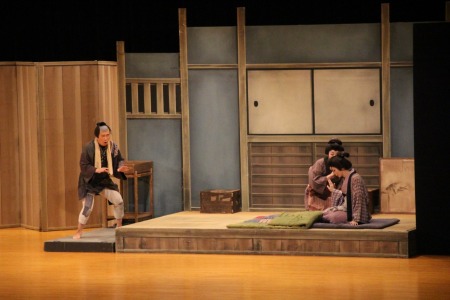 今年の観劇会は12月18日(火)に澤柳記念講堂で行われました。演目は「くず~い屑屋でござい」。劇団前進座による公演で、古典落語「井戸の茶碗」をもととした演劇です。物語の舞台は江戸時代の長屋。お芝居をより深く味わうため、上演の前に江戸の人々の暮らしについて紹介がありました。