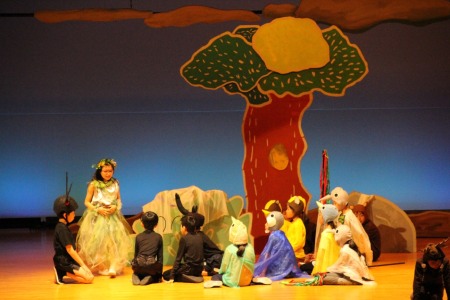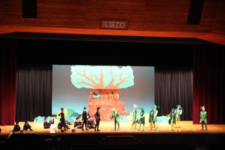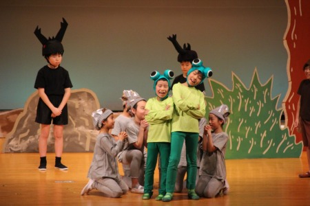 イソップ物語の名作「ありとキリギリス」に教員が脚色・潤色した成城バージョンを上演した楓組。働き者のありと能天気なキリギリスの対比を色濃く演じていました。
