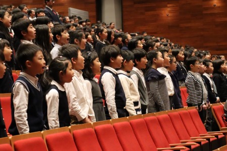 初等学校本校舎の建替工事に伴い、澤柳記念講堂での開催となった今年の卒業式。広い会場が在校生の大きな拍手に包まれる中、背すじを伸ばして晴れやかな表情の卒業生が入場しました。渡辺校長から「相手の立場になり、相手の気持ちを考えることができる、思いやりのある人になってください」という言葉が贈られました。一人ひとり卒業証書を受け取り、渡辺校長と固い握手を交わす卒業生たち。舞台上で卒業証書を手にするその姿は、自信に満ちているようで成長を感じさせてくれました。最後は全員で『卒業式の歌』を元気に歌い卒業生を送りだしました。4月から始まる新たな舞台でもご活躍されることを願っています。ご卒業おめでとうございます。