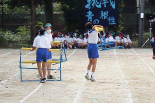 4年生クラス対抗ハードルリレー。1種目目から熱戦が繰り広げられました