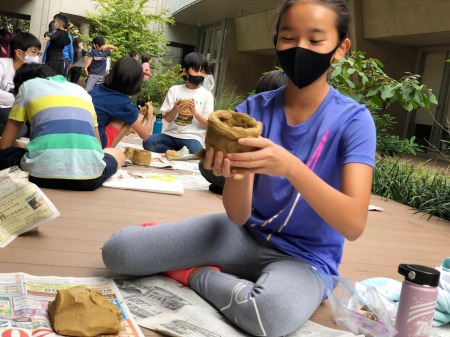 社会で縄文時代のことを学び、縄文式土器を作っています。