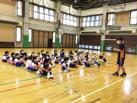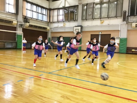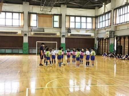 フットサルのルールを知り、チームに分かれて試合をしました。