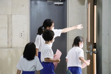 「おしゃべりは禁止。みんなを診てくれる先生たちには心の中でお礼を言おうね」。ソーシャルディスタンスを保ち、先生方へのあいさつは会釈のみ。感染症拡大防止に配慮しながら実施しました。