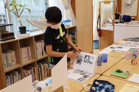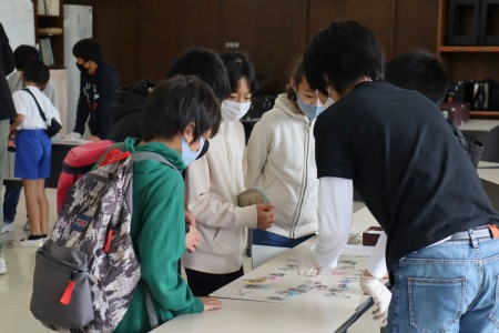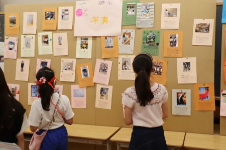 教室ではクラス展を開催。オープニングの後はみんなの作品を見てまわりました