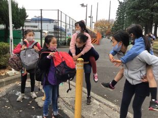 今年のグループハイキングは、11月24日(火)赤グループ、11月26日(木)青グループ、11月30日(月)緑グループに分かれて「砧公園」で実施をしました。少し肌寒い中でのグループハイキングになりましたが、赤や黄色に染まった木々に囲まれてそれぞれのユニットで楽しい時間を過ごしていました。今年は、「つながり」の授業が4月からスタートできていませんでしたが、ユニット内で上手に過ごしていました。上級生は下級生の子にやさしく声をかけ、下級生はお兄さんお姉さんを頼りに笑顔いっぱいでした。