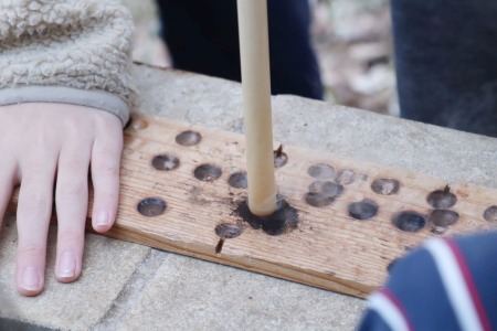 白樺組は火おこし器を使って火おこし体験に挑戦しましたが、なかなか火がつかず大苦戦