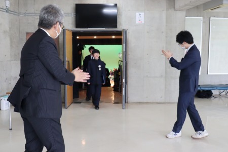保護者や在校生、先生方からの大きな拍手で送り出される卒業生たち