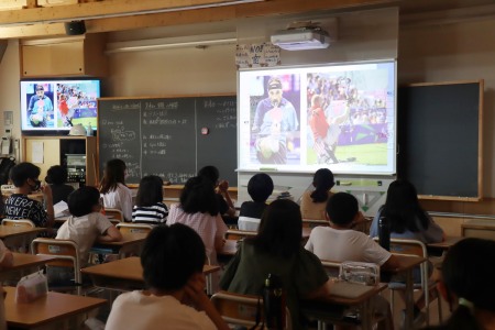 第一部は教室で動画を交えた授業を聞いてオリンピック・パラリンピックについて学びました